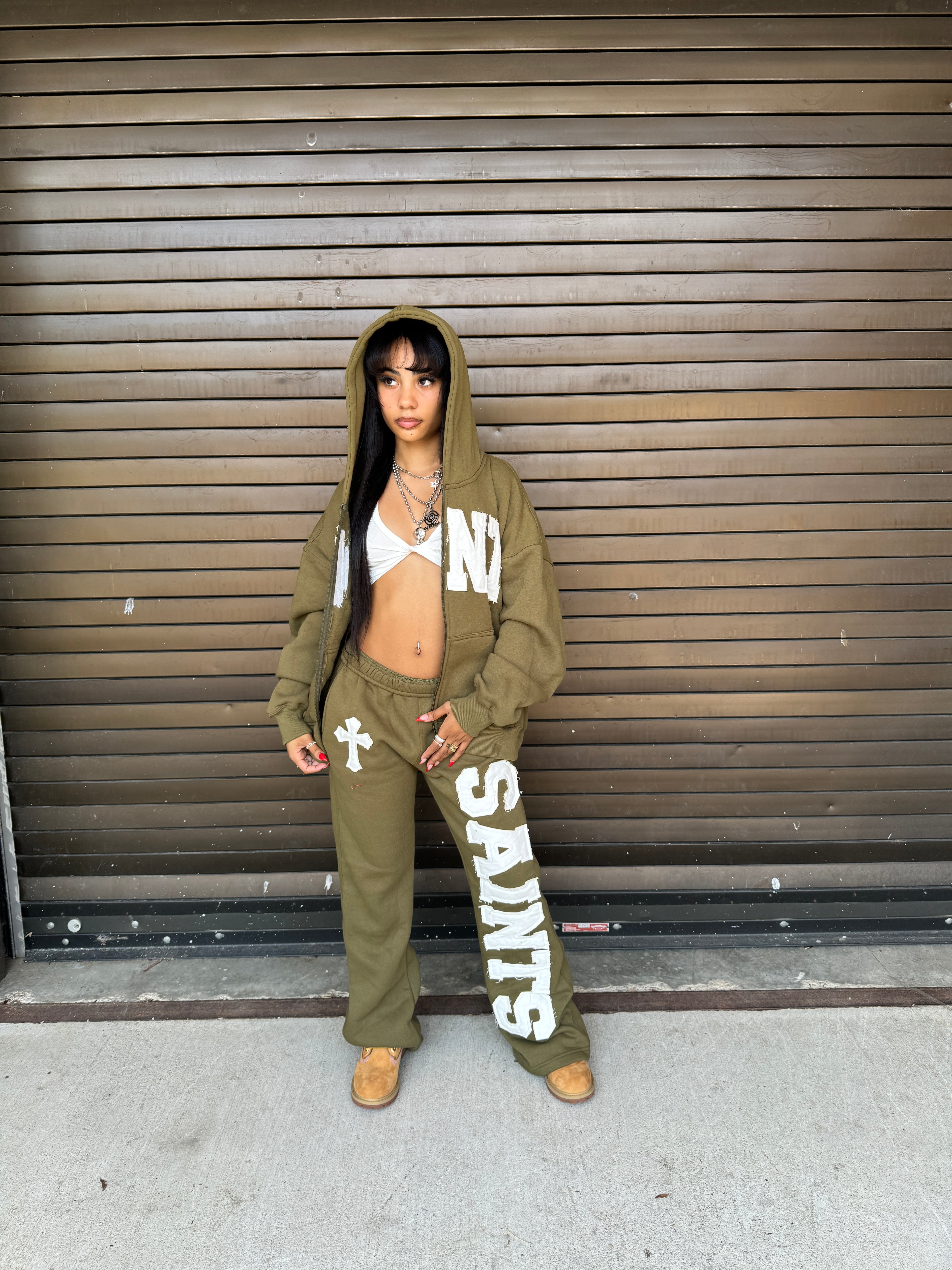 LIGHT GREY “SAINTS” FLARED SWEATPANTS