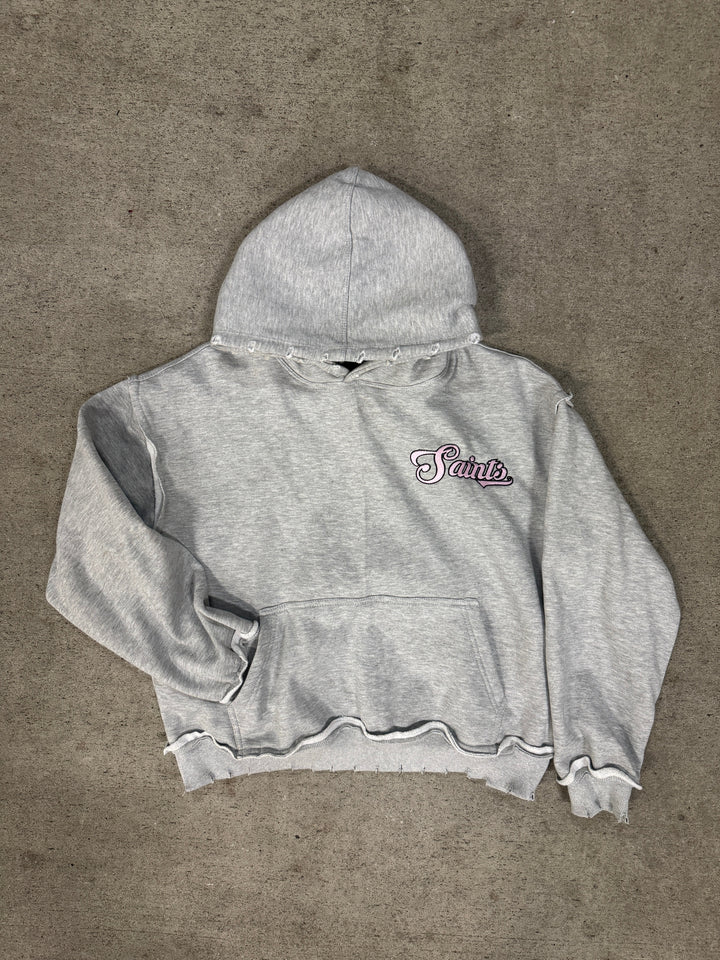 -Embroidered “Saints” pink logo front chest in pink + black outline